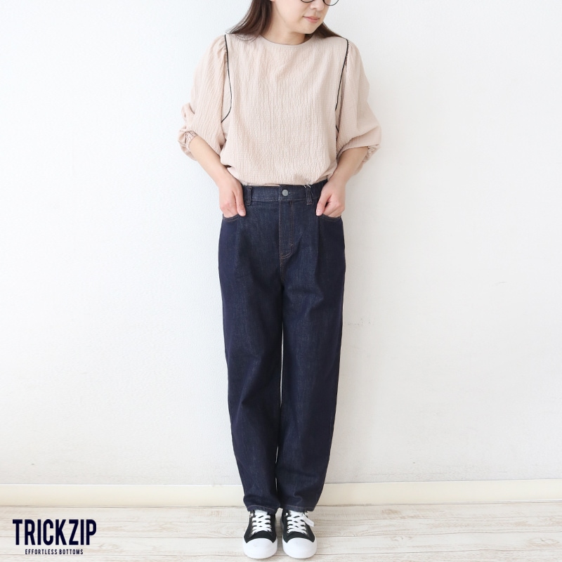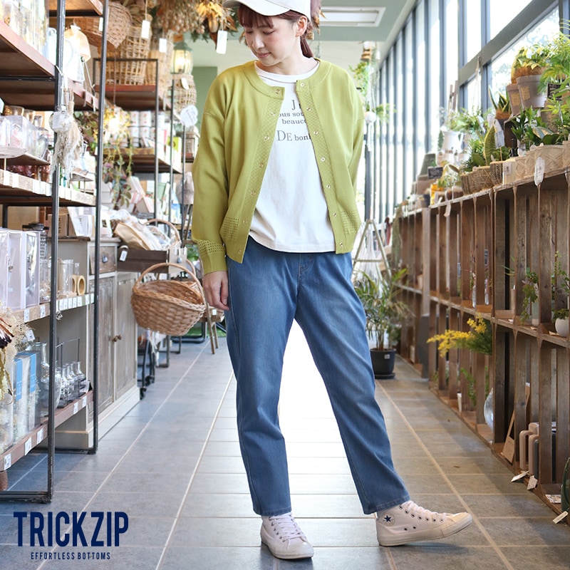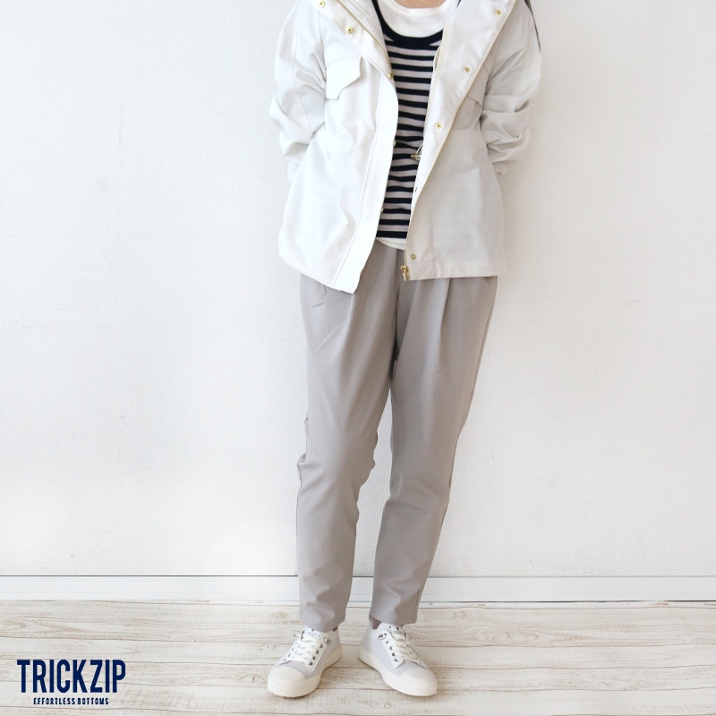 トリックジップはなんといっても、ウエストはぐるりと一周ゴム&ファスナーもないので、穿くときも、穿いててもとにかく楽!なんです◎