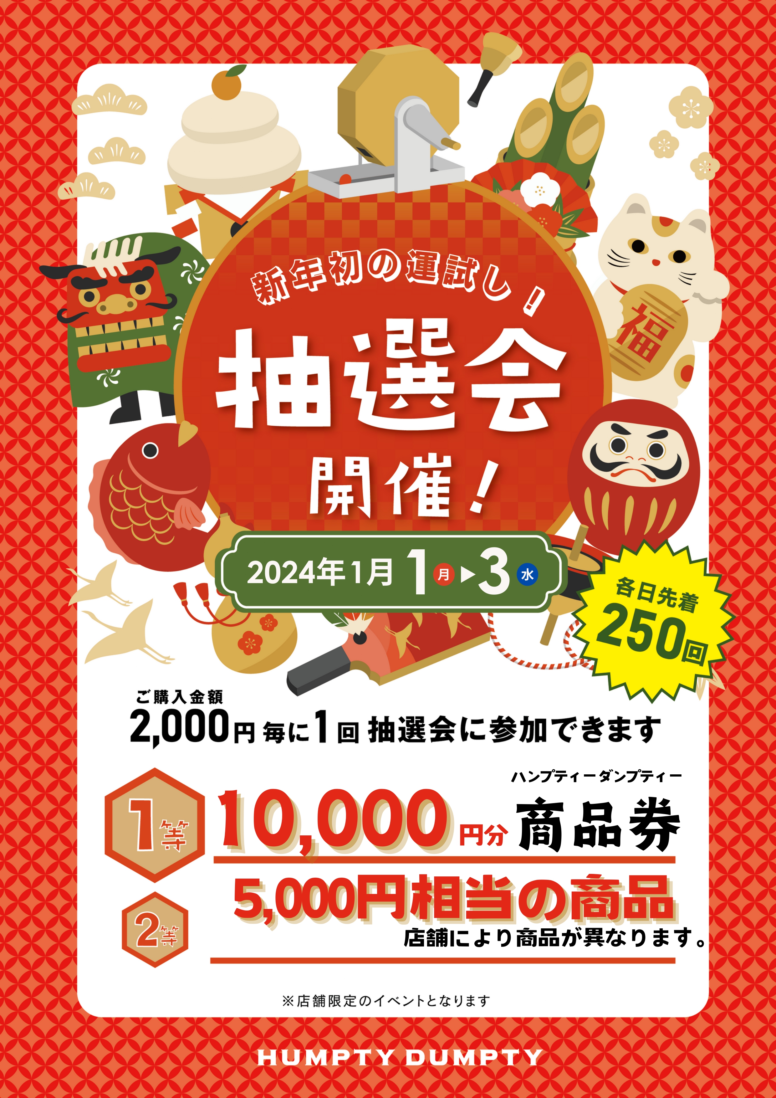 【内容】 購入金額2,000円毎に1回抽選会にご参加可能