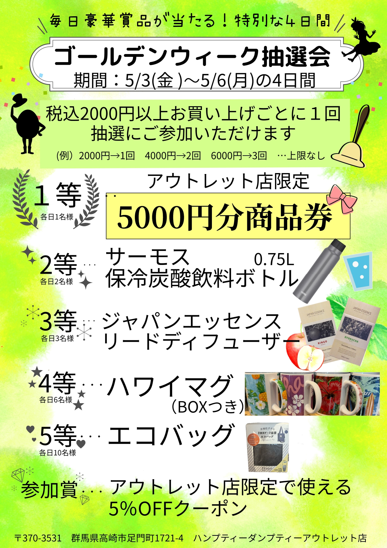 GWはぜひご家族一緒にアウトレット店にお立ち寄りくださいませ♪