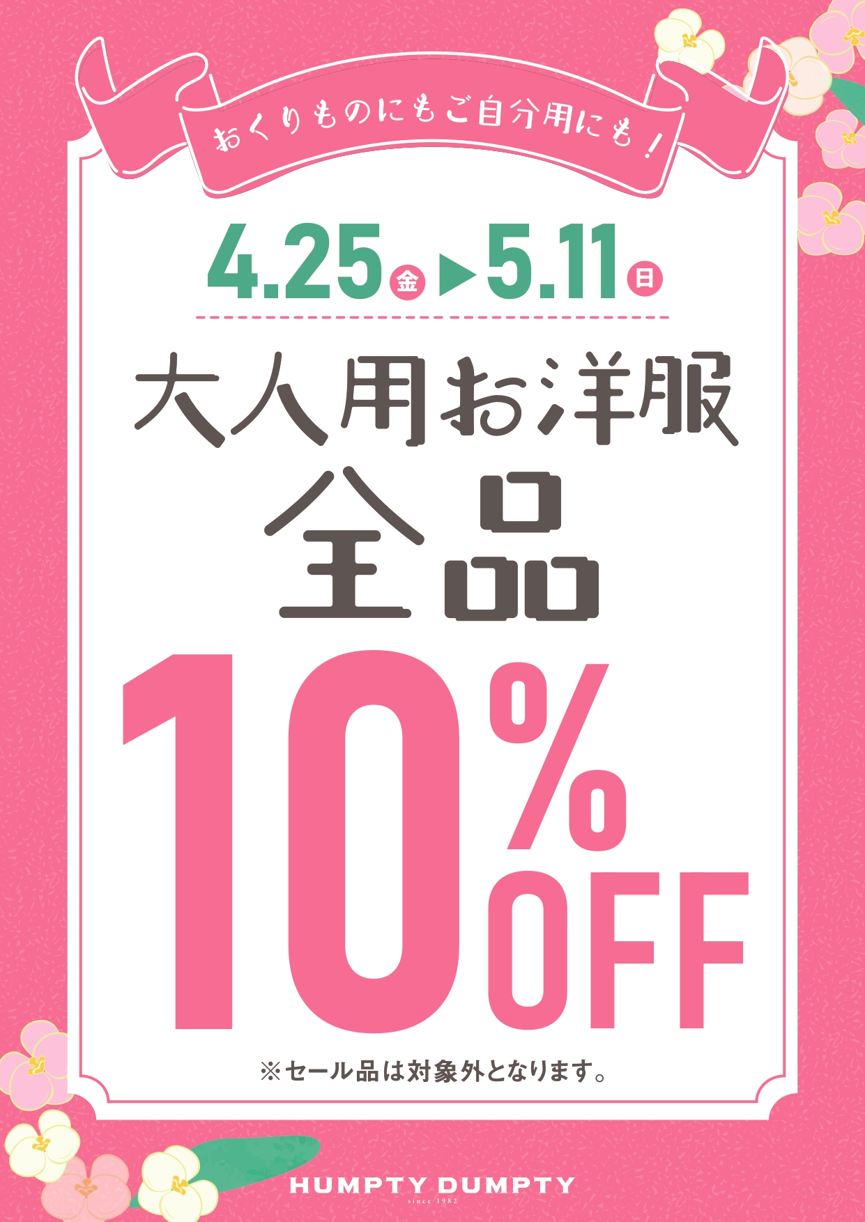 お洋服全品レジにて10%オフになります♪ (セール商品は対象外となります)