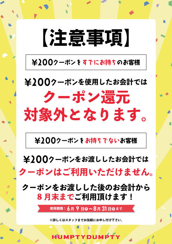 【6.21-】※追加開催※20%クーポン還元注意事項