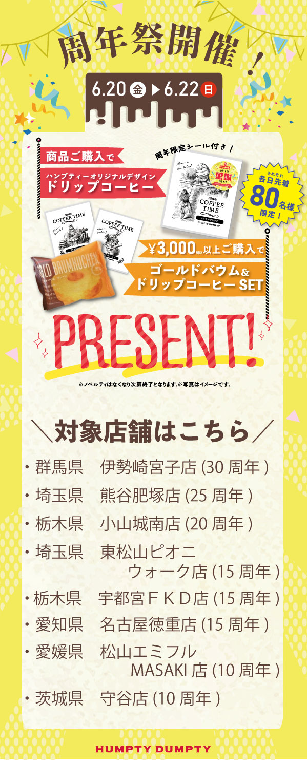 TOPお知らせ > 【6.20-22】周年祭ノベルティープレゼント