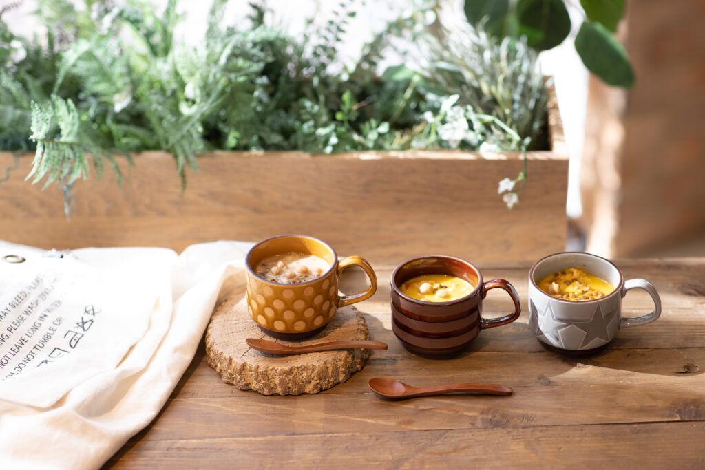 ほっこりスープメニューが新登場。オーガニック豆の具沢山スープです。葉酸が豊富とされているひよこ豆と、鉄分が豊富とされているレンズ豆がたっぷり入っています。「リッチパンプキン」「デミグラストマト」「クリーミージンジャー」の3種類。お豆たっぷりで、満足感があります。飲むスープというよりは、具沢山の食べるスープです‼