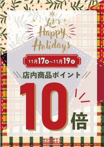 TOPお知らせ > HappyHolidayポイント10倍11.17_19