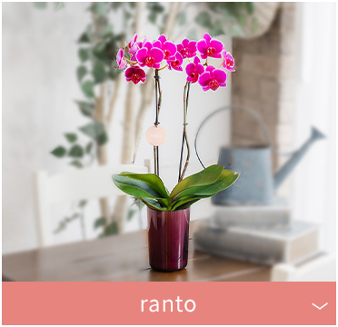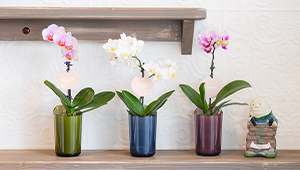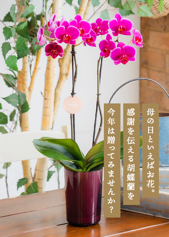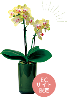 インテリアに適した小さい胡蝶蘭です。花は2-3ヶ月間咲き続け、切花と違い長く楽しんでいただけます。水やりもサイズによって異なりますが、底面吸水で月に1-2回程度で、水やりの頻度も少なく、忙しい方でも気負わずに花のある華やかな生活を送ることができます。