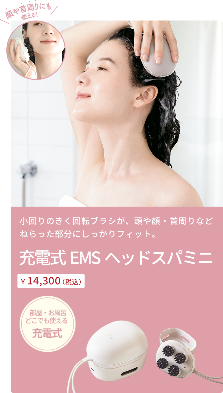小回りのきく回転ブラシが、頭や顔・首周りなど