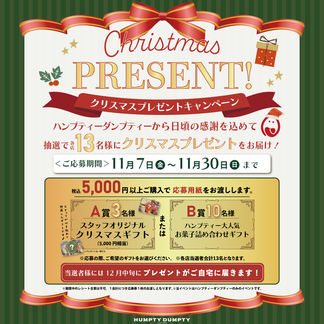 お知らせ 2025.11.06 🎄✨クリスマスプレゼントキャンペーン✨🎁